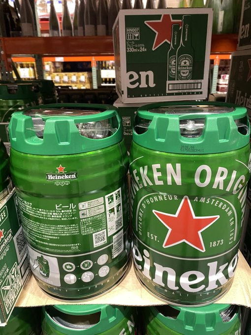 電源不要でそのまま注げる、5Lサイズのケグタイプのハイネケンです。